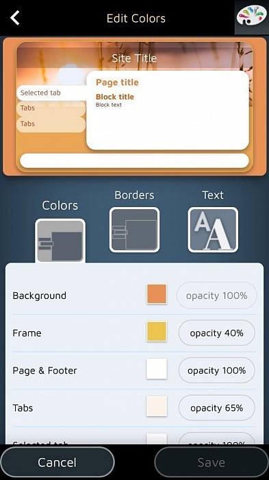 SimDif Pro stranica vam pomaže u definiranju vlastitih boja. Igrajte se s prozirnošću različitih elemenata. Definirajte kutove kartica i stranica. Odaberite font za svaku vrstu naslova i za glavni tekst... S Pro verzijom možete stvoriti vlastiti jedinstveni grafički predložak!